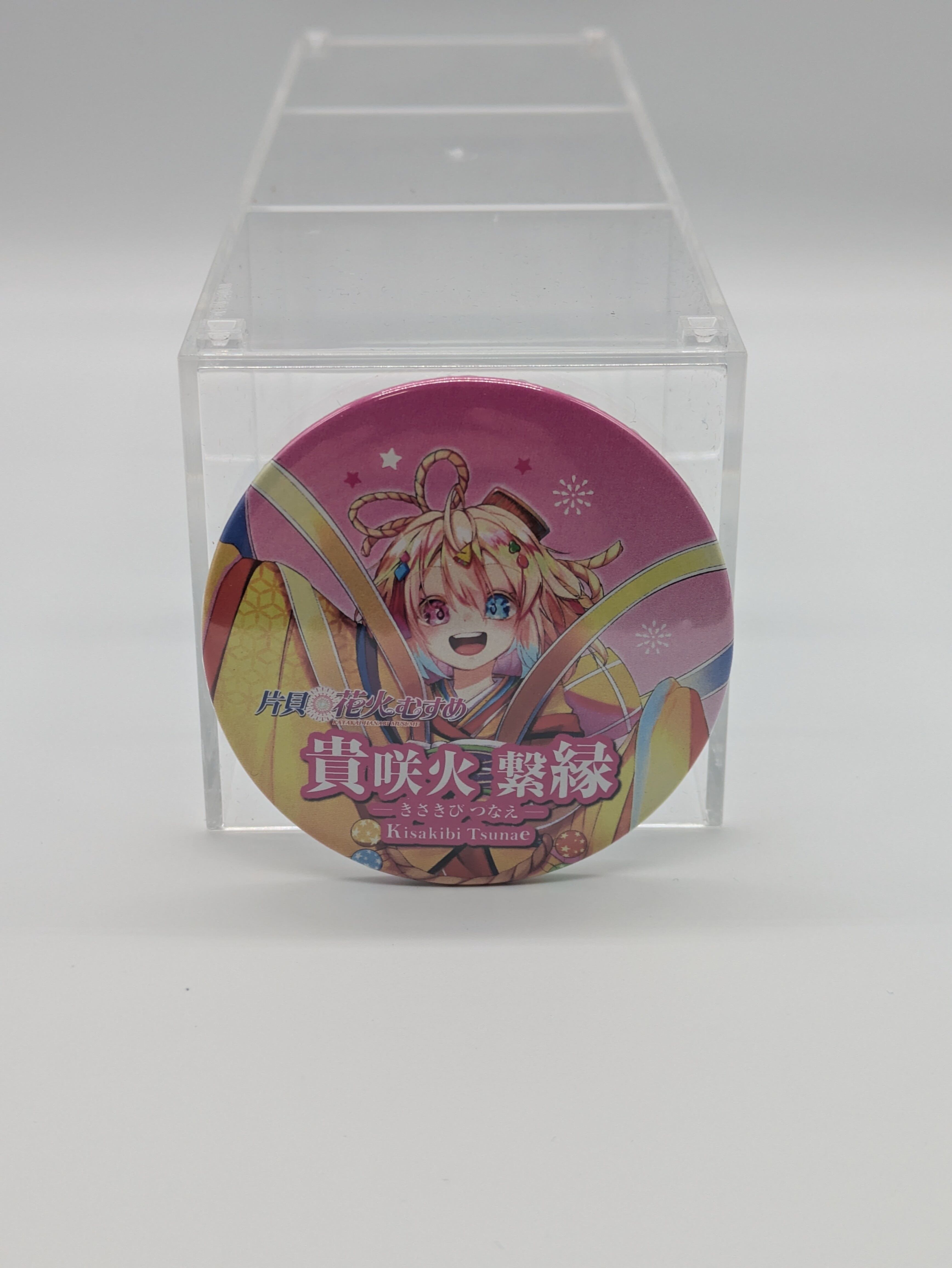片貝煙火工業の花火を擬人化したキャラクター「片貝花火むすめ」の缶バッジ(直径約6cm・全6種類)です。
